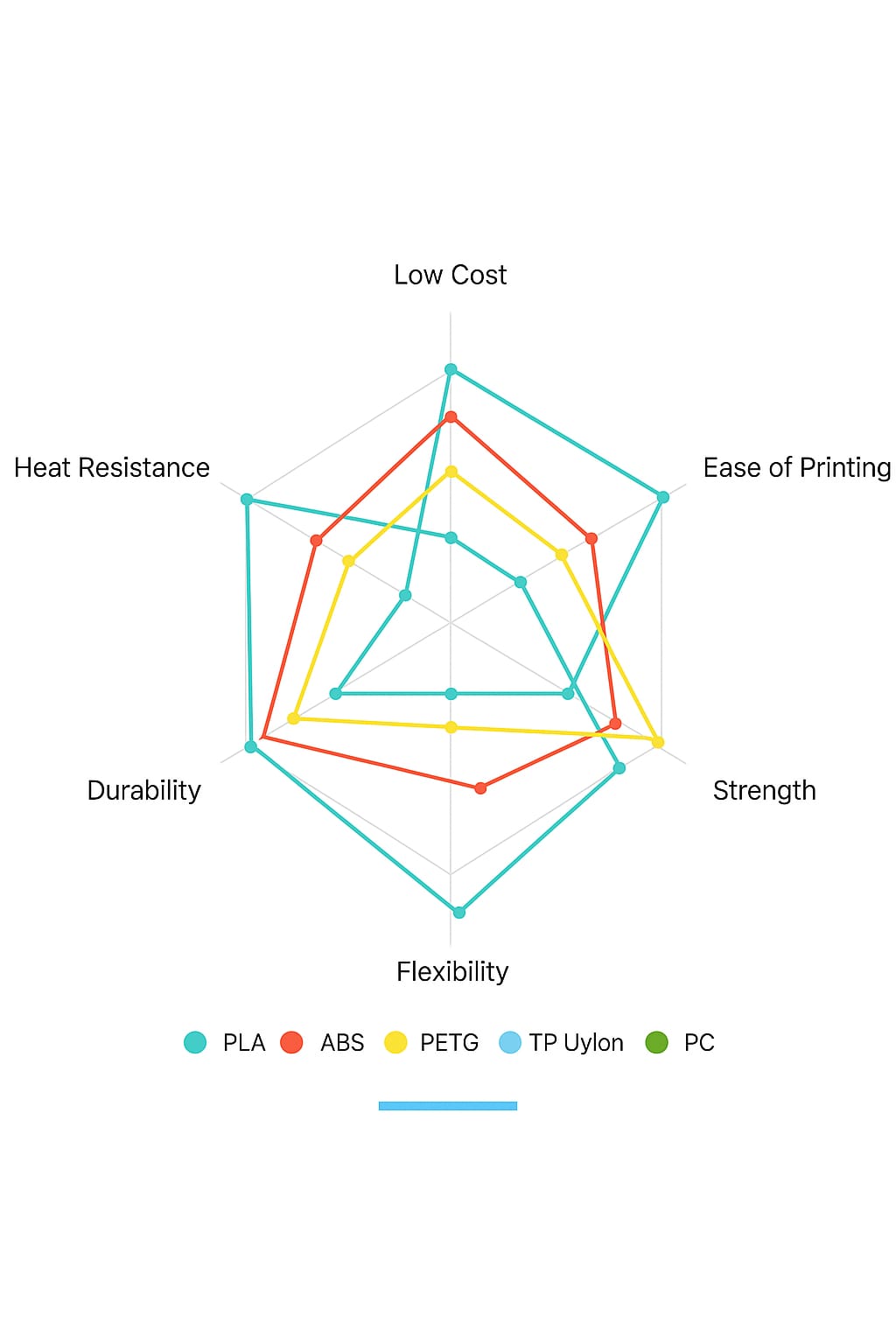 TPE ist ein gummiähnliches Material, aus dem Gegenstände mit elastischen Eigenschaften hergestellt werden können. Es ist bekannt für seine Flexibilität, Haltbarkeit und hohe Verschleißfestigkeit. TPE-Filamente sind eine beliebte Wahl für Anwendungen, die weiche, flexible Teile mit ausgezeichneter Stoßfestigkeit erfordern.